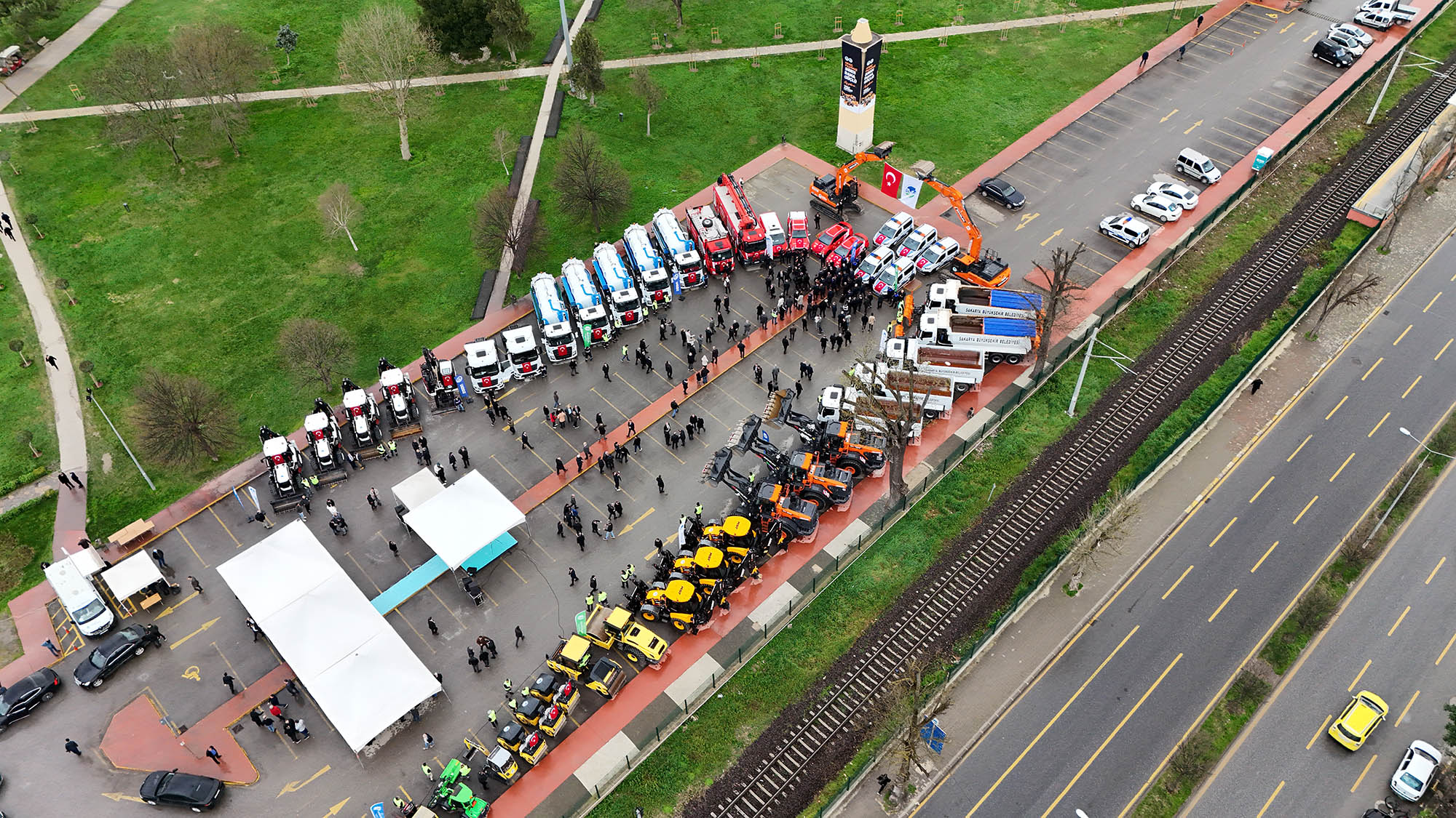 Aziz Duran Parkı’nda hazır bulunan araçlar, törenin ardından görev bölgelerine hareket etti.