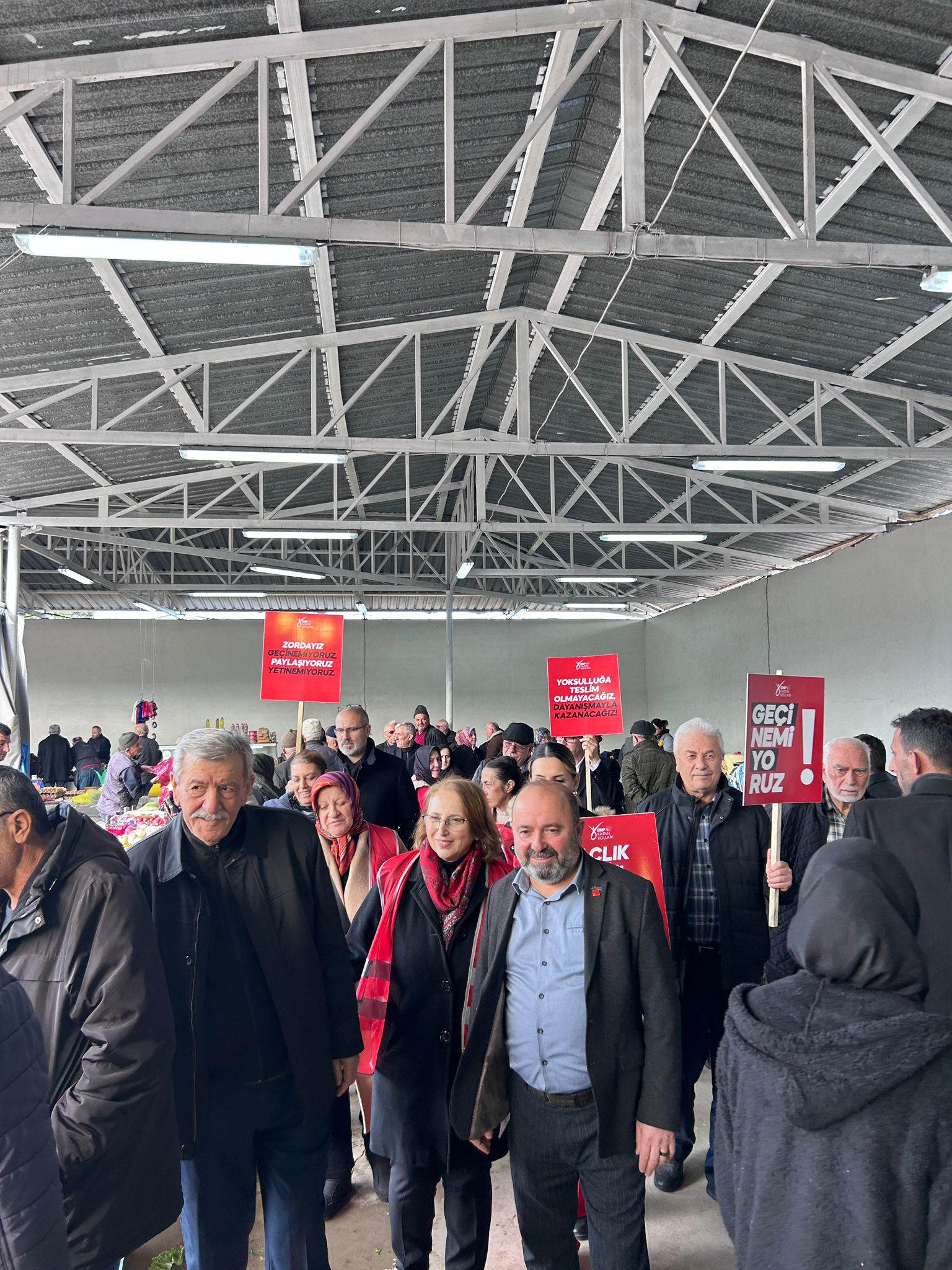 Semt pazarında esnaf ve vatandaşlarla bir araya gelen Çaroğlu ve beraberindeki partililer, hem alışveriş yapan yurttaşların hem de tezgâh başındaki esnafın sorunlarını dinledi. Artan hayat pahalılığı ve düşen alım gücüne dikkat çeken vatandaşlar, özellikle Ramazan ayında temel gıda ürünlerine erişimde yaşadıkları zorlukları dile getirdi.
