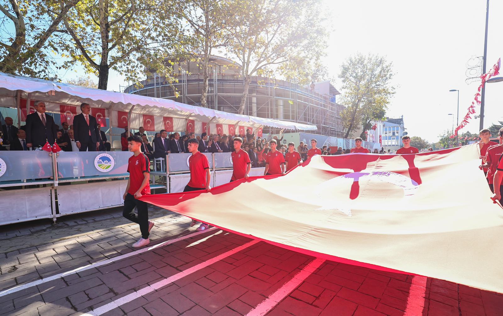 Burada gerçekleştirilen kortej yürüyüşü ve geçit töreni, şehir merkezinde adeta bir bayram şöleni havası yarattı. Başkan Alemdar, ellerinde bayraklarıyla bayram coşkusunu yaşayan binlerce Sakaryalıyla bir araya geldi. Geçit töreni sırasında vatandaşlar, bayraklarıyla bulvarı adeta tablo gibi süsledi.