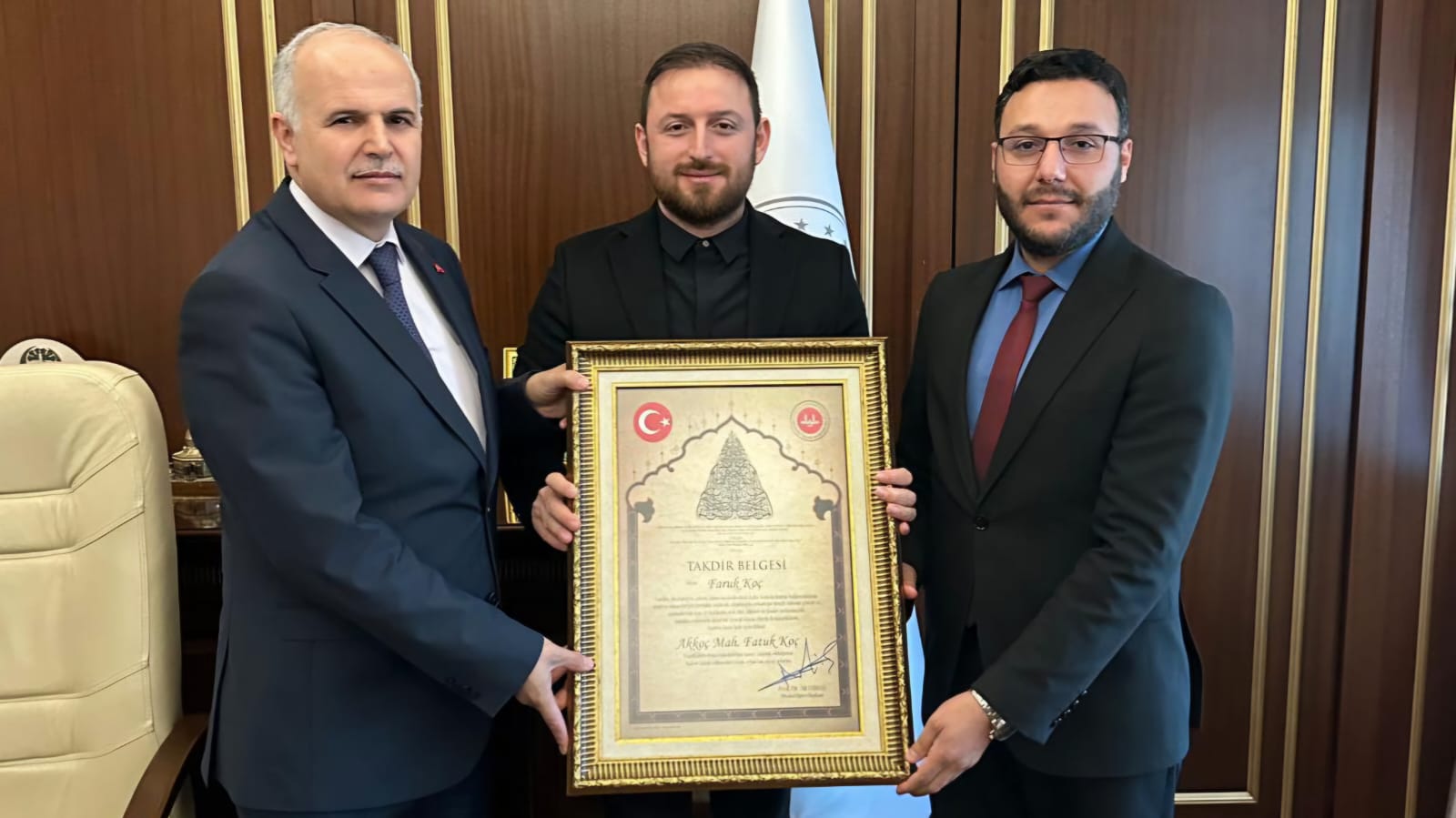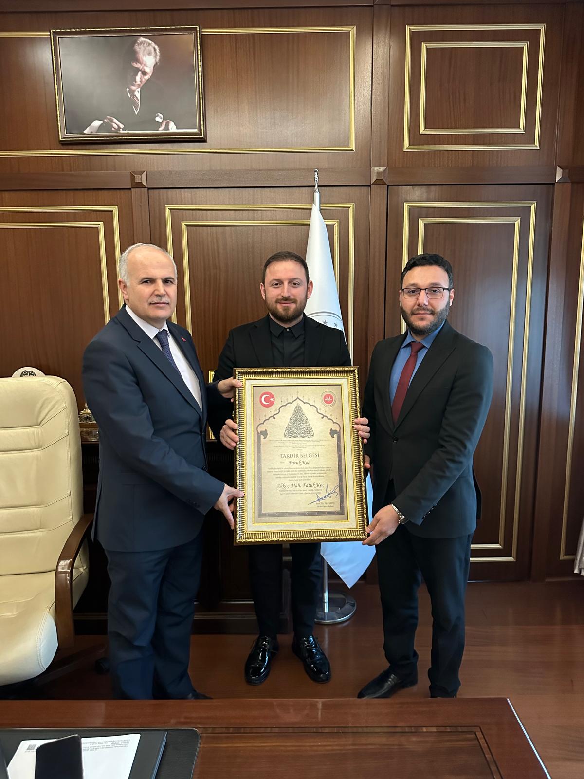 Açılış töreninde, Diyanet İşleri Başkanı Prof. Dr. Ali Erbaş tarafından imzalanan takdir belgesi, Faruk Koç’a takdim edildi. Koç, bu anlamlı ödüle layık görüldüğü için büyük bir mutluluk duyduğunu belirterek, “Cami, sadece bir ibadethane değil, aynı zamanda dayanışmanın ve birlikteliğin bir simgesidir,” ifadelerini kullandı.
