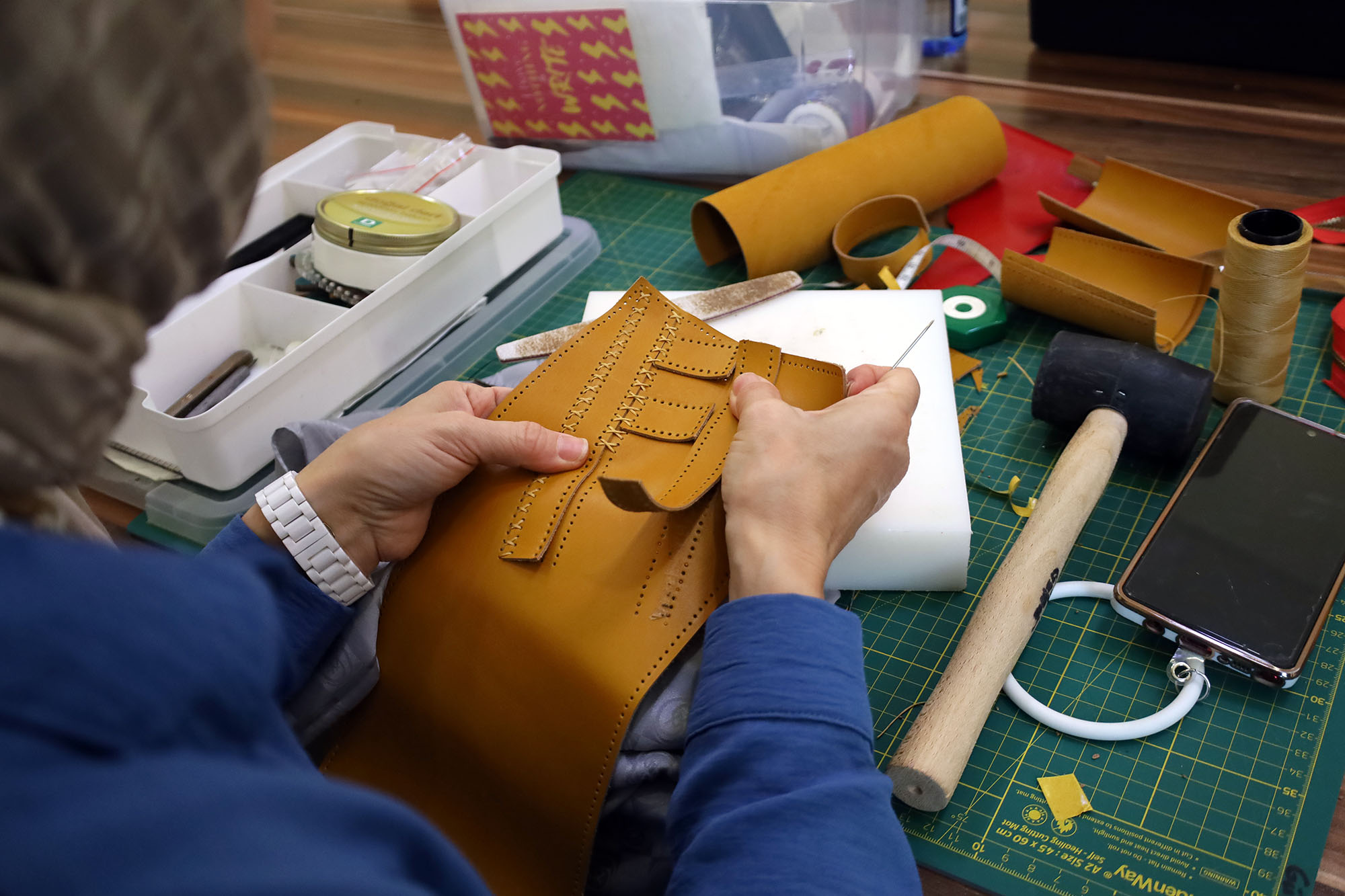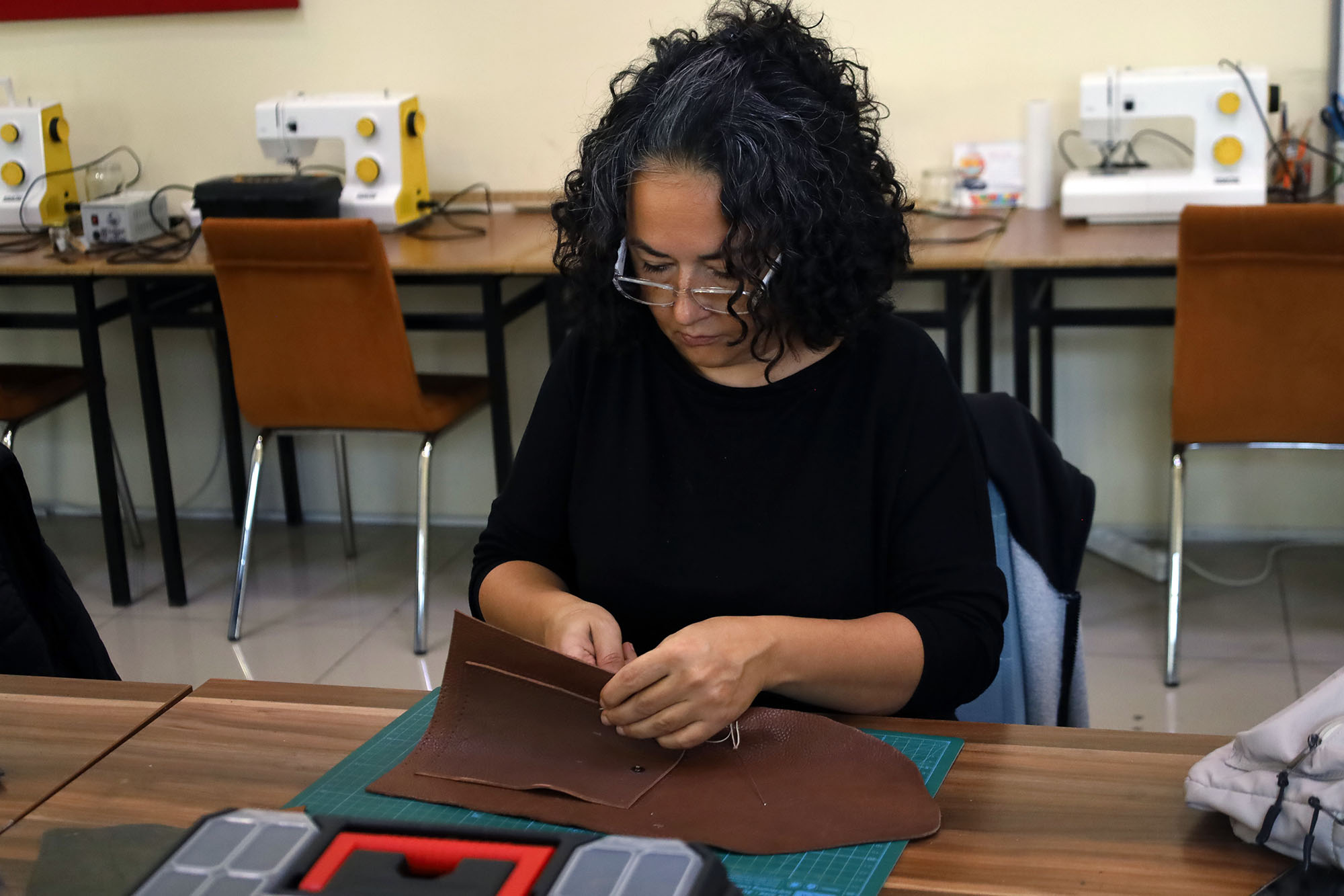 34 yaşındaki çevre mühendisi Çağla Ünalan ise deri aksesuarları kursuyla ilgili, “Evde kendi başıma deriyle uğraşıyordum, ekipmanlarımı almıştım ama yalnız başıma ilerleyemedim. Araştırmalarım sonucu bu kursu buldum ve ilk kez katıldım. Burada herkes birbirinden bir şeyler öğreniyor. Ahşap kursuna katılan birinin yakma tekniğini ya da dikiş kursuna giden birinin dikiş tekniğini kullanabiliyorsunuz. İleride yaptığım ürünleri satabilir, oğlumun eşyalarında ya da evdeki dekorasyonda bu ürünleri kullanabilirim” dedi.
