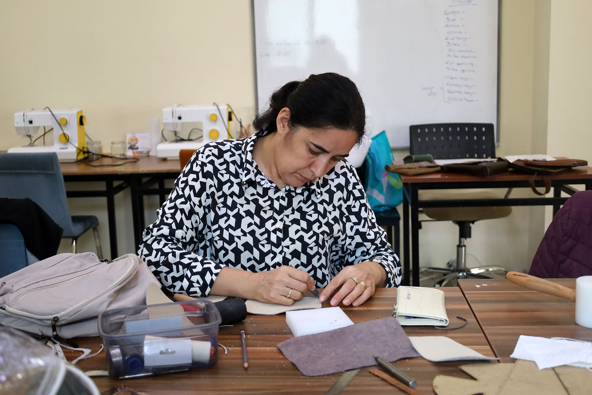 Sakarya Büyükşehir Belediyesi, 16 farklı merkezde sunduğu SAMEK eğitimleriyle vatandaşların yaratıcılığını üretime dönüştürmeye devam ediyor. Bu merkezlerden biri olan Camili SAMEK’te bu yıl ilk kez deri aksesuarları dersi açıldı.