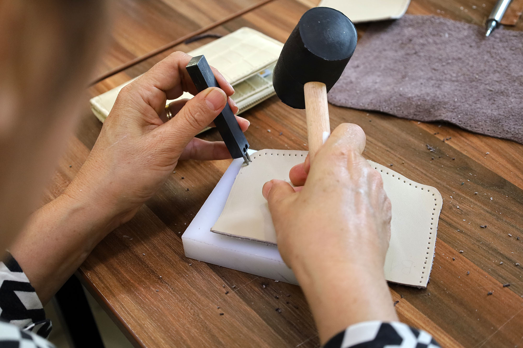 Deri aksesuarları atölyesinde kursiyerler cüzdan, kemer, çanta ve takı gibi el yapımı ürünler üretiyor. Bu özgün eserler hem günlük yaşamda kullanılıyor hem de ev ekonomisine katkı sağlıyor.Özellikle kadın kursiyerler, kendi tasarımlarını hayata geçirerek tüketim alışkanlıklarını üretime dönüştürüyor. Atölyede deri işleme teknikleri, dikiş ve süsleme yöntemleri gibi beceriler öğretiliyor.