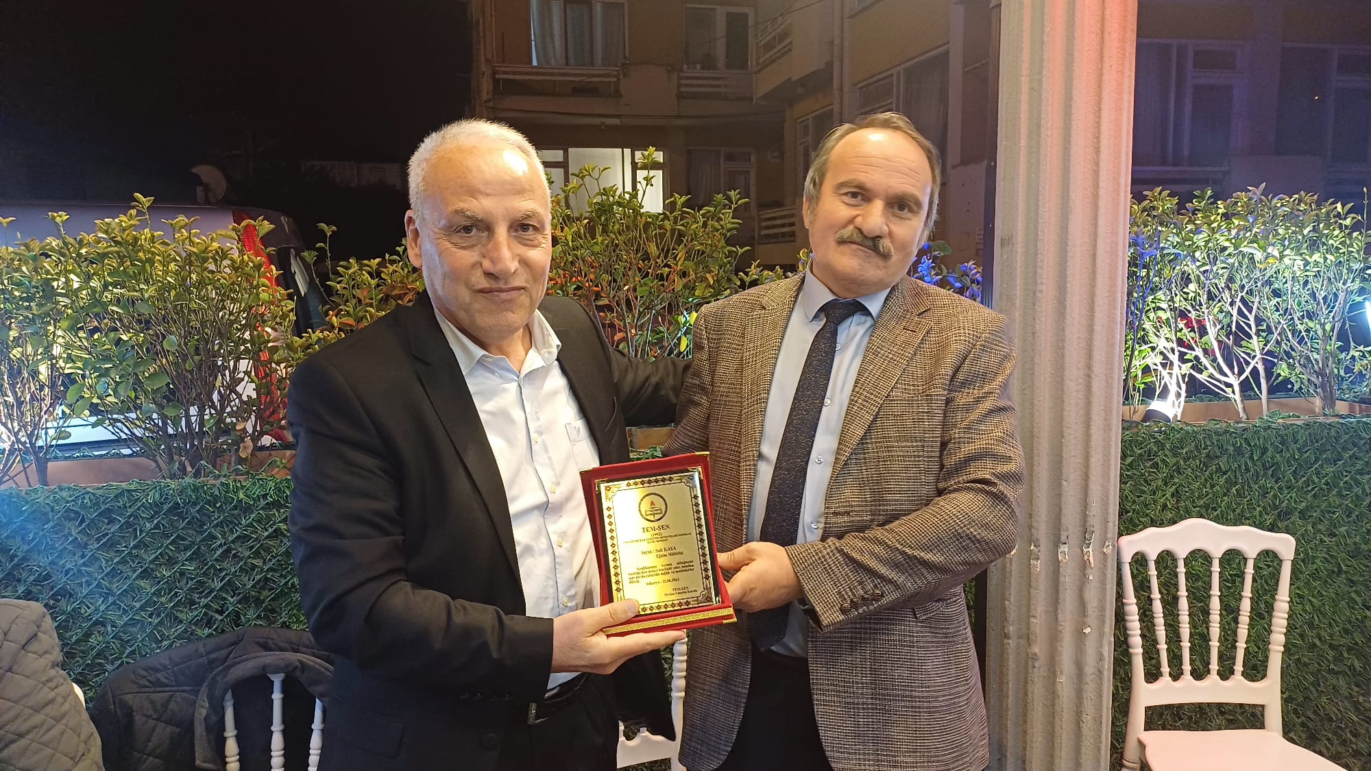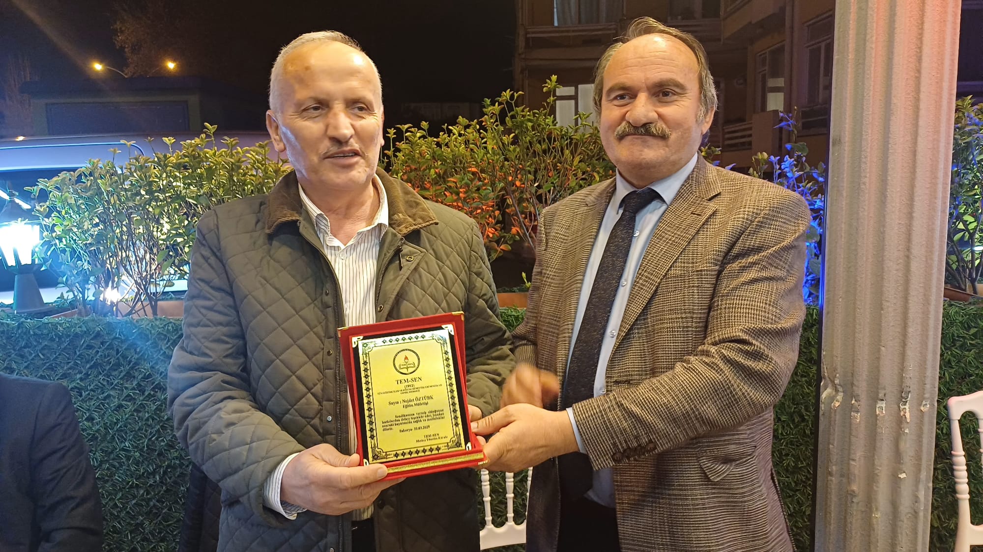 İftar programında, uzun yıllar eğitim camiasına hizmet eden ve emekliye ayrılan Sait Kaya ve Necdet Öztürk için özel bir plaket töreni düzenlendi. Emekli müfettişlere plaketleri, Tem-Sen Sakarya İl Temsilcisi Önder Bilici tarafından takdim edildi. Plaket takdiminde konuşan yetkililer, Kaya ve Öztürk’e verdikleri hizmetlerden dolayı teşekkür ederek, kendilerine sağlık, mutluluk ve huzur dolu bir emeklilik hayatı dilediler. İftar programı, sıcak sohbetler ve iyi dileklerin ardından sona erdi.