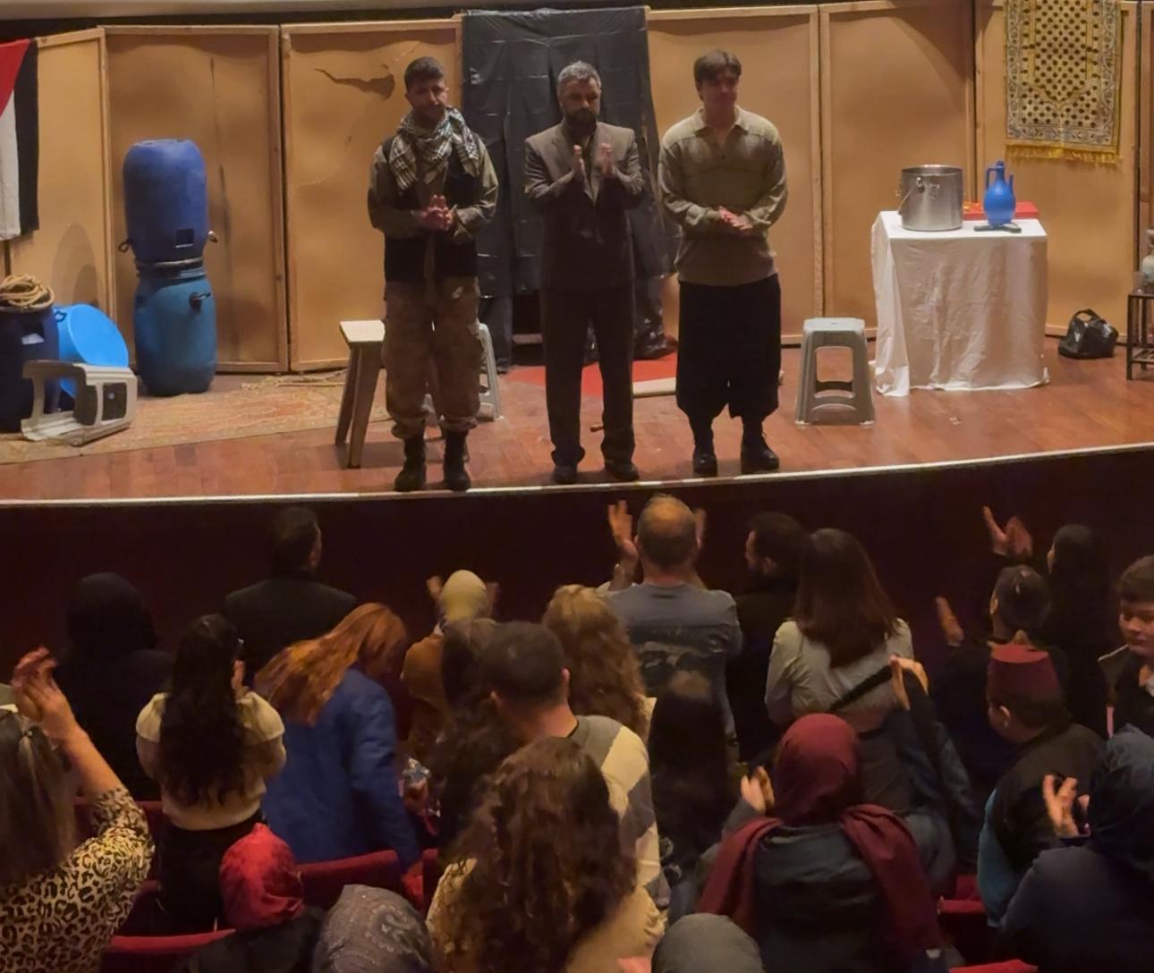 Oyunun sahneleniş biçimi de dikkat çekiciydi. Gösterim, tıpkı Filistin’in her geçen gün küçülen sınırları gibi dar bir alanda sergilendi. Bu metafor, izleyicilere işgal altındaki topraklarda yaşanan daralma hissini birebir yaşattı.