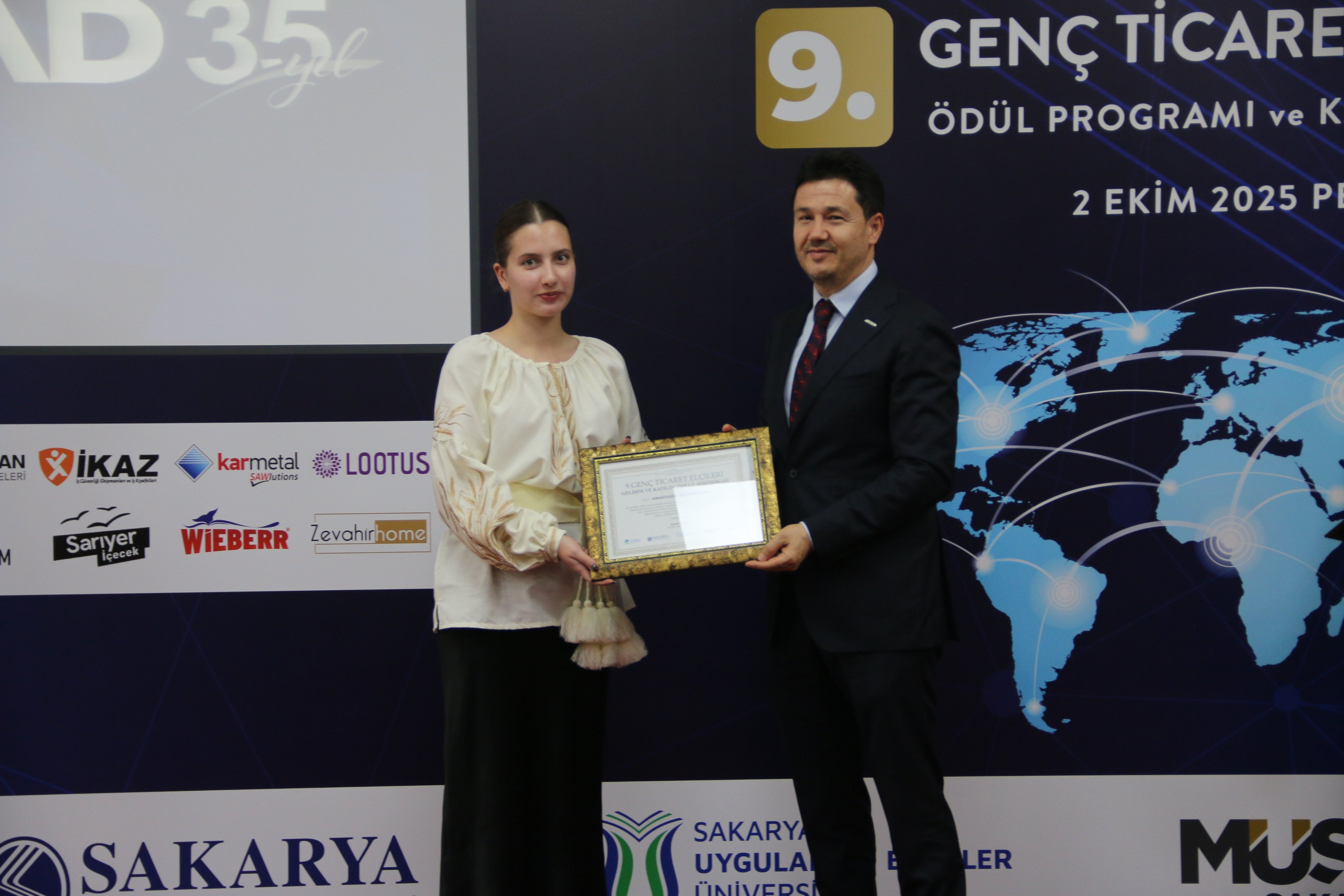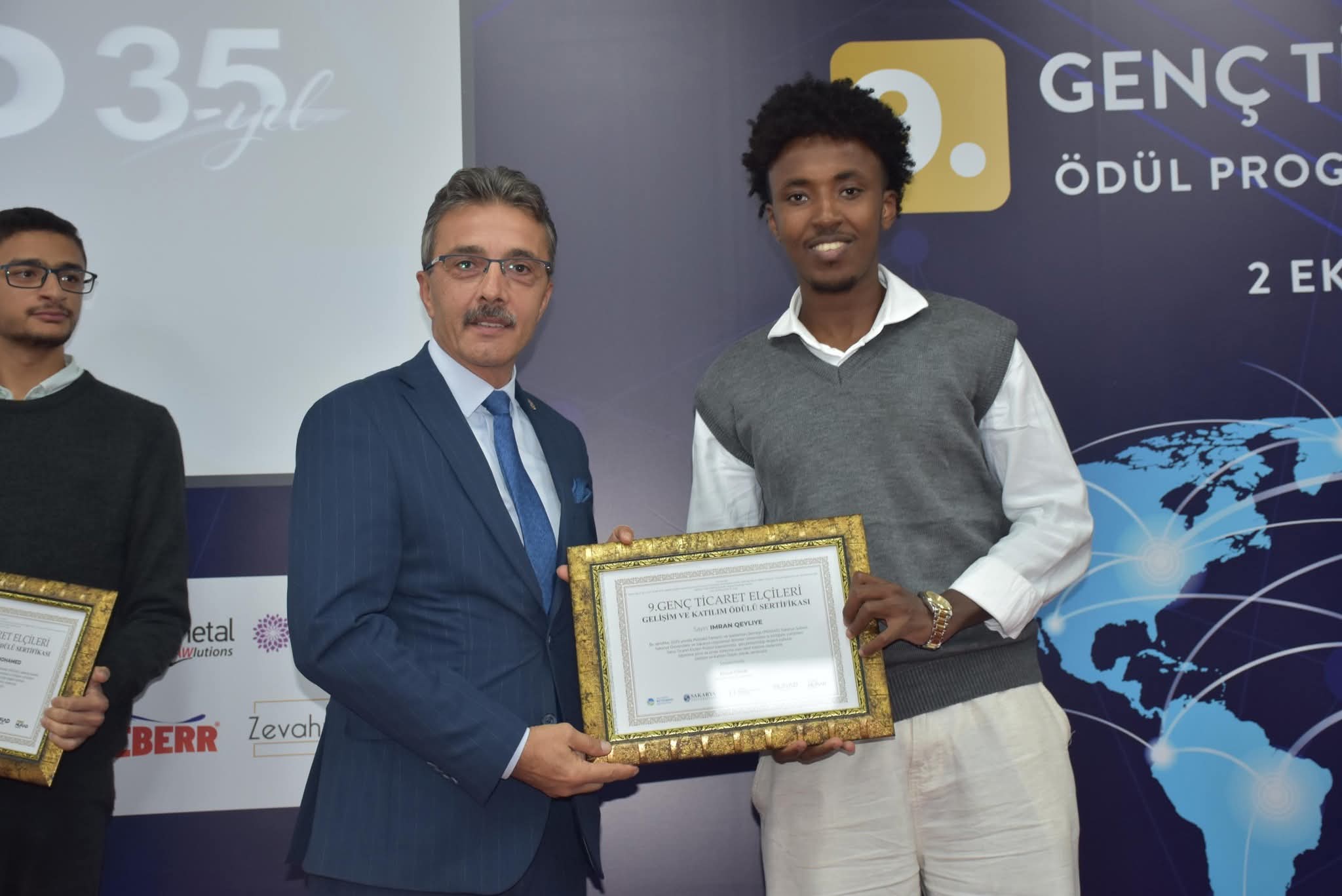 Sakarya Valisi Rahmi Doğan, gençlerin dış ticarette ve girişimcilikte önemli birer elçi haline geldiğini ifade ederek başarılı öğrencilere ödüllerini takdim etti.