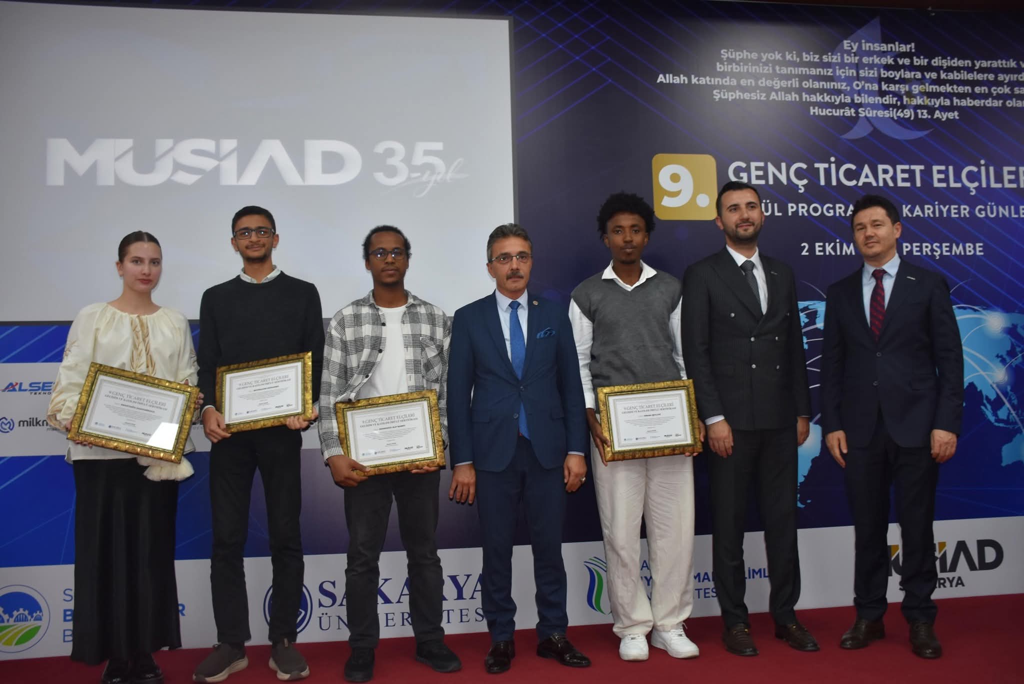 Genç MÜSİAD Sakarya tarafından düzenlenen 9. Genç Ticaret Elçileri Ödül Programı, Sakarya Valisi Rahmi Doğan’ın teşrifleriyle MÜSİAD Sakarya Şubesi’nde gerçekleştirildi. Uluslararası öğrencilere dış ticaret, pazarlama ve girişimcilik alanlarında önemli katkılar sağlayan program, bu yıl da yoğun katılımla gerçekleşti.