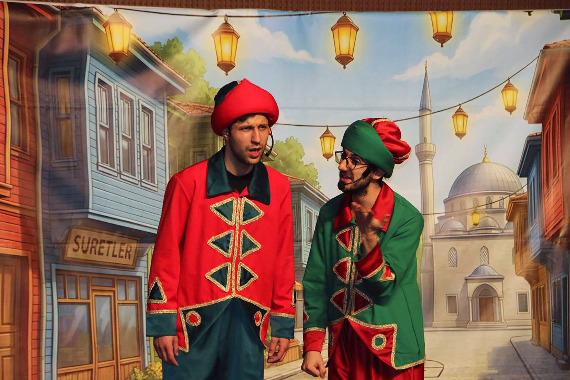 Atölye çalışmalarının ardından program, konferans salonunda sahnelenen tiyatro gösterisiyle devam etti. Yazarlığını ve yönetmenliğini Fatih Sancaklı’nın üstlendiği Karagöz-Hacivat oyunu, eğlenceli anlatımı ve verdiği mesajlarla minik izleyicilerden büyük alkış aldı. Programın sonunda çocuklara allı güllü, pıt mısır, kaymak ve hurma ikram edildi.