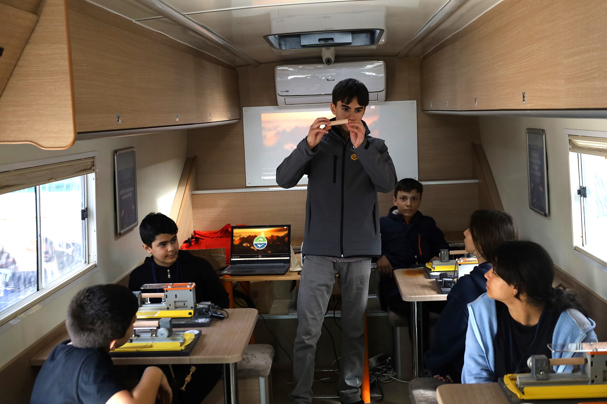 Türkiye’nin dört bir yanında çocuklara deniz sevgisini aşılamak için yola çıkan TURMEPA’nın gezici eğitim otobüsü, Sakarya’da 5., 6., 7. ve 8. sınıf öğrencileriyle buluştu. Oyunlar, interaktif eğitimler ve görsel materyallerle desteklenen programda, çocuklara deniz ekosisteminin önemi, kirliliğin nedenleri, su kaynaklarının korunması ve deniz canlılarının yaşam alanlarının sürdürülebilirliği gibi konular aktarıldı.