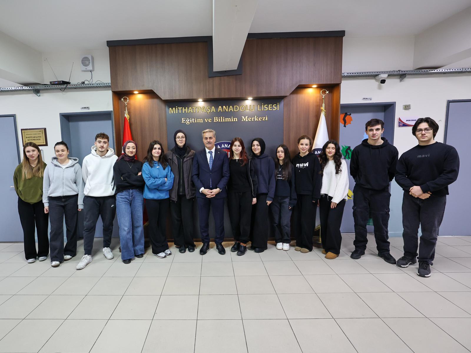 Her fırsatta gençlerle bir araya gelmeye büyük önem veren Sakarya Büyükşehir Belediye Başkanı Yusuf Alemdar, ikinci dönemin başladığı ilk haftada Mithatpaşa Anadolu Lisesi’ni ziyaret ederek öğrencilerle buluştu.