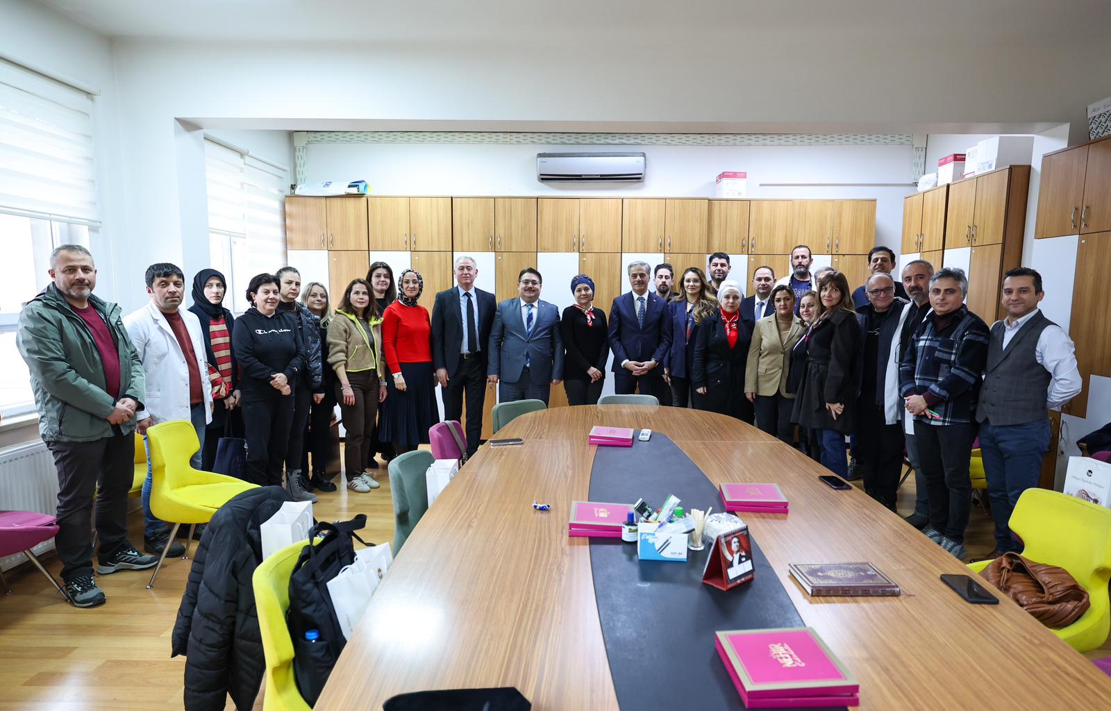 Söyleşi sonrası Başkan Alemdar ve Milli Eğitim Müdürü Bakırtaş, öğretmenler odasında öğretmenlerin istek ve taleplerini dinledi.