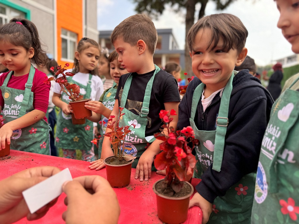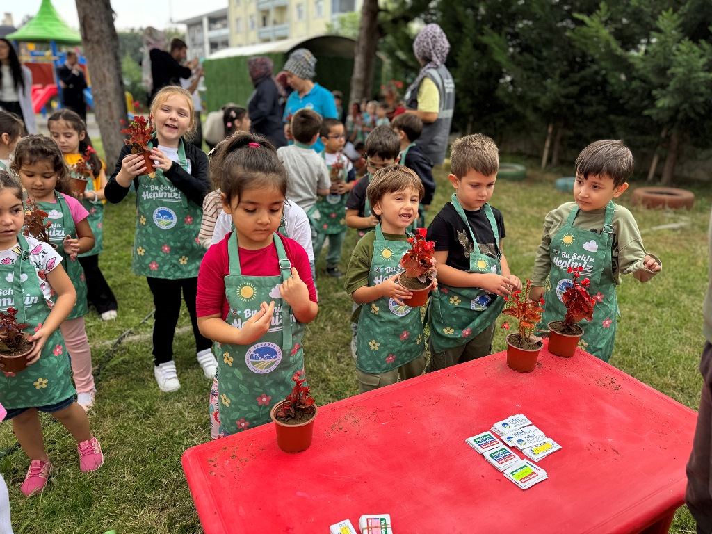 Park ve Bahçeler Dairesi Başkanlığı ile Halkla İlişkiler Şube Müdürlüğü’nün ortak çalışmasıyla düzenlenen etkinlikte, 300’ü aşkın anaokulu öğrencisi bahçıvan önlüklerini giydi. Minikler, saksılara mevsimlik çiçekler ekerek bitki yetiştirmeyi öğrendi ve doğaya katkı sağlamanın sevincini yaşadı.