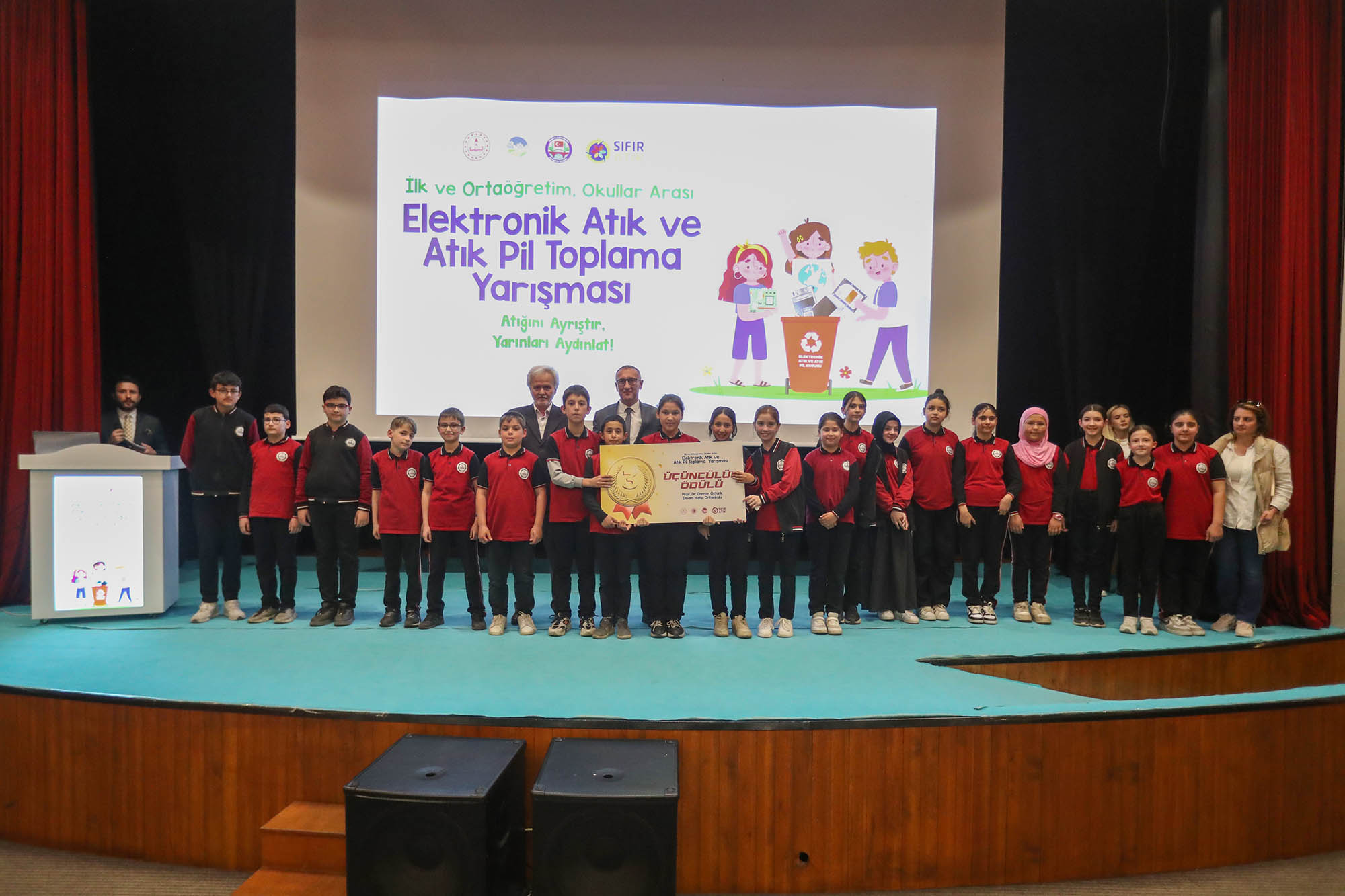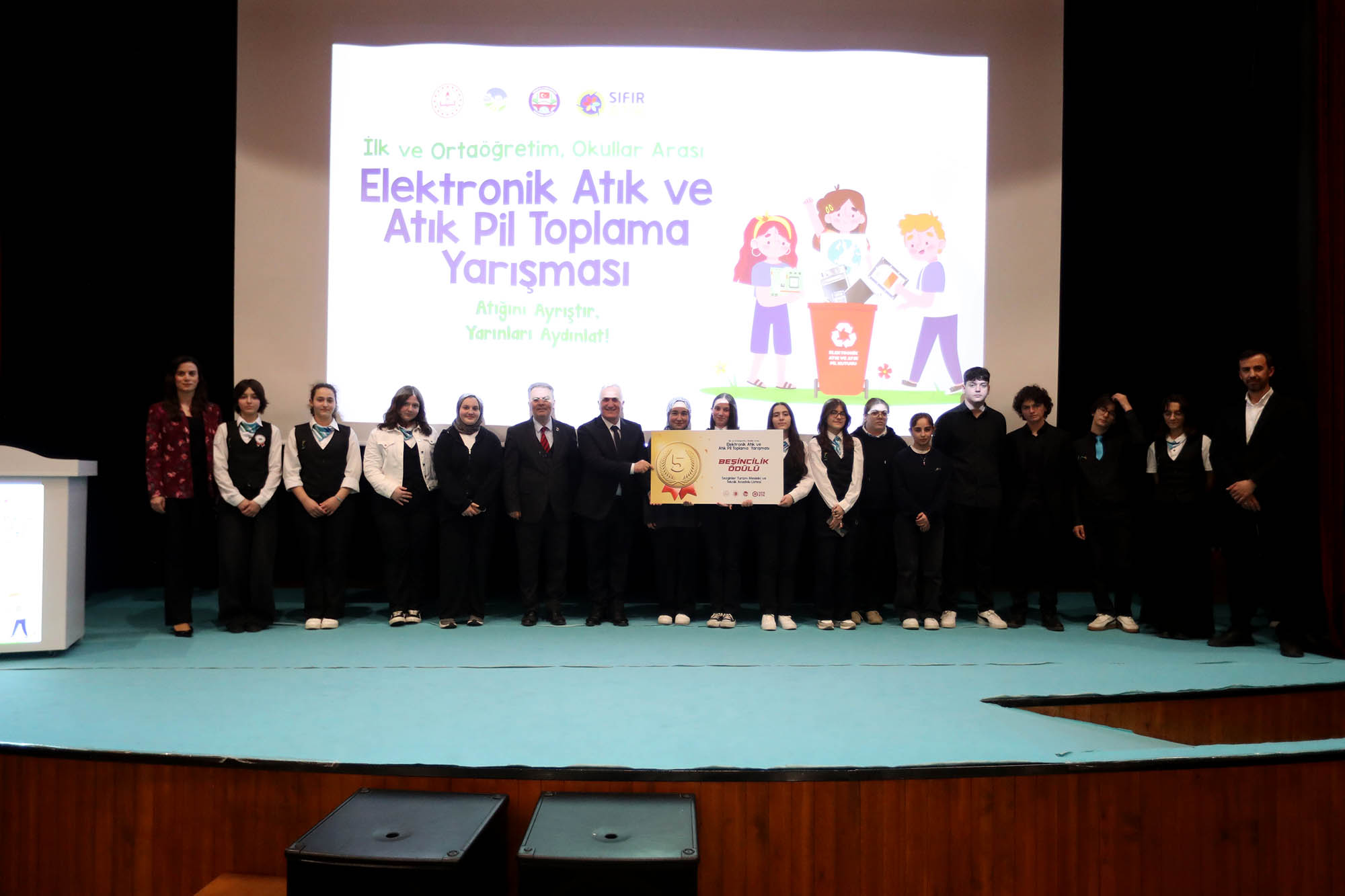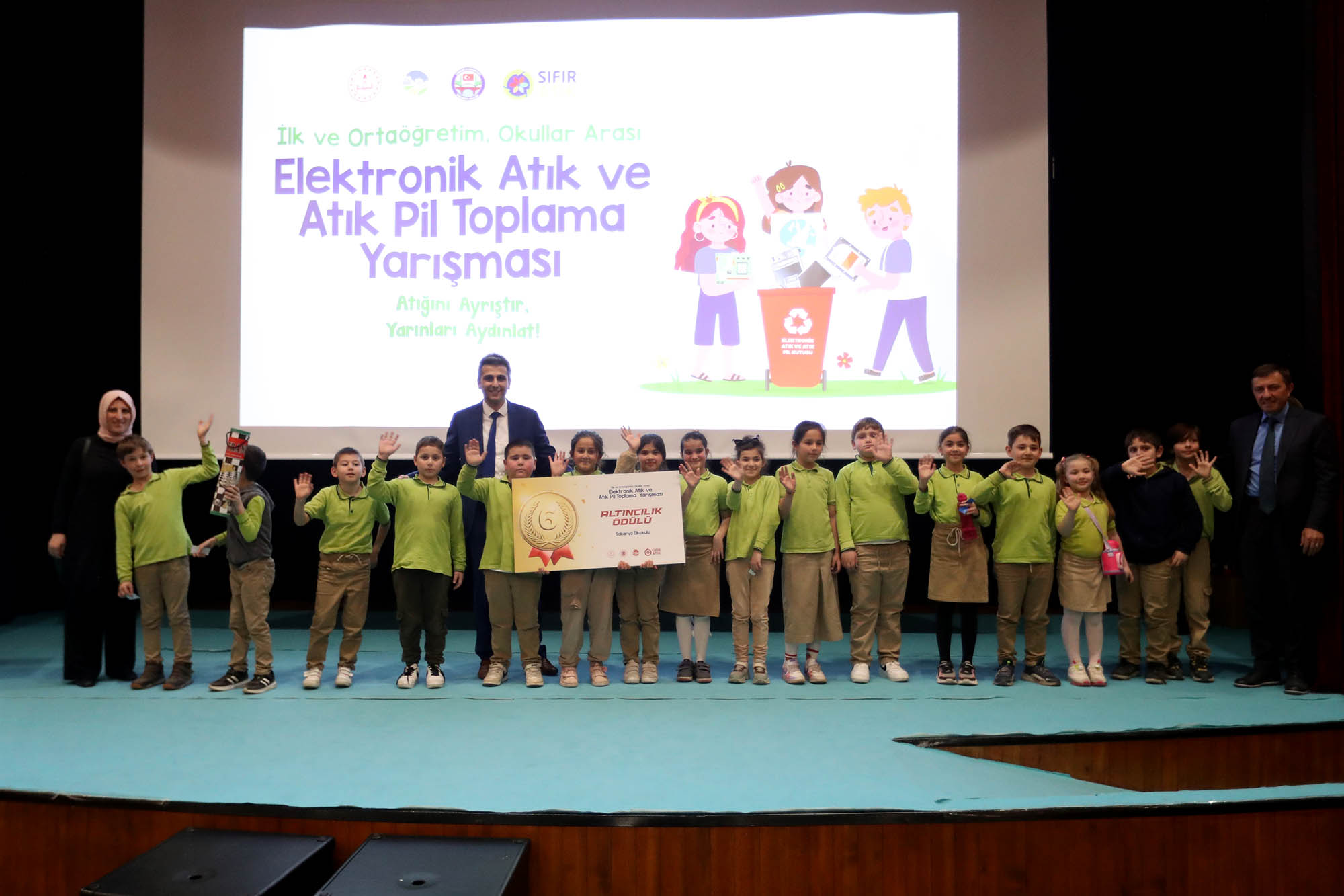 Elektronik Atık ve Atık Pil Toplama Yarışması’nda, 1’incilik ödülünü Karasu Şehit Üsteğmen İbrahim Abanoz Anadolu Lisesi, 2’nciliği Sakarya Üniversitesi Vakfı Okulları, 3’üncülüğü ise Prof. Dr. Osman Öztürk İmam Hatip Ortaokulu, 4’üncülüğü 21 Haziran İlkokulu, 5’inciliği Sezginler Turizm ve Mesleki Teknik Anadolu Lisesi, 6’ncılığı Sakarya İlkokulu ve 7’nciliği Ekrem Oba İlkokulu ve Ortaokulu kazandı.Ayıca törene katılan öğrencilere çeşitli hediyeler verilirken, çekilişle 10 öğrenciye bisiklet hediye edildi.