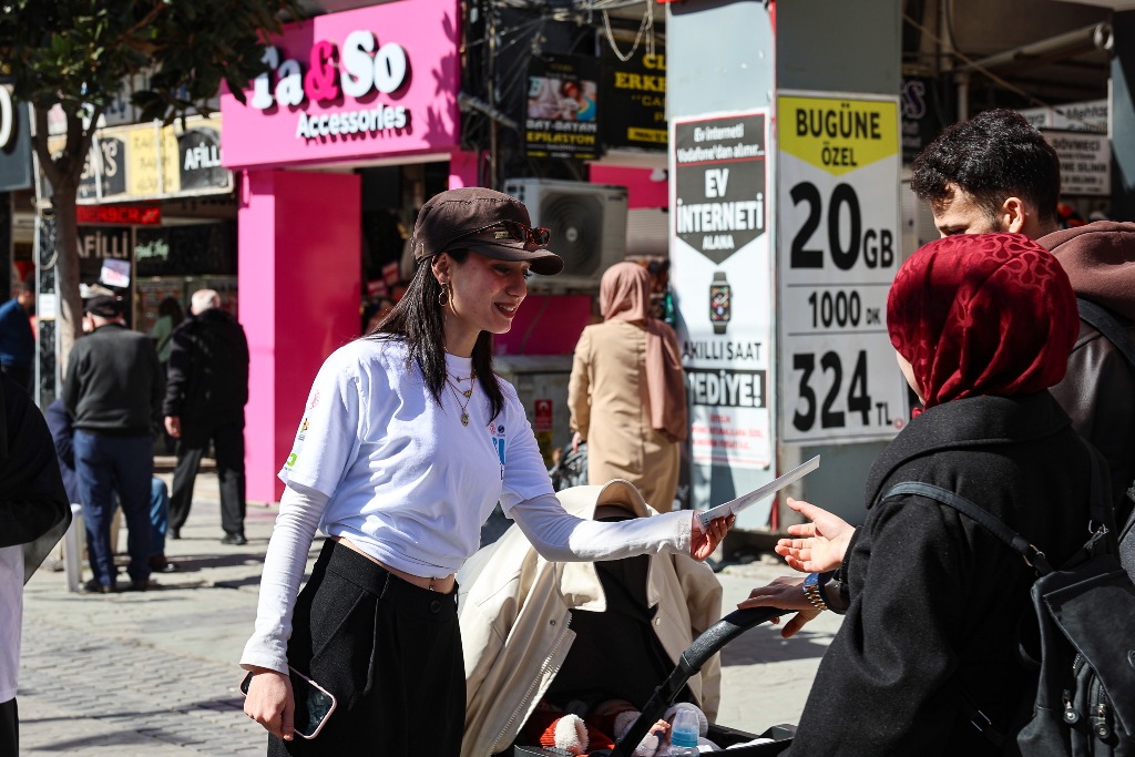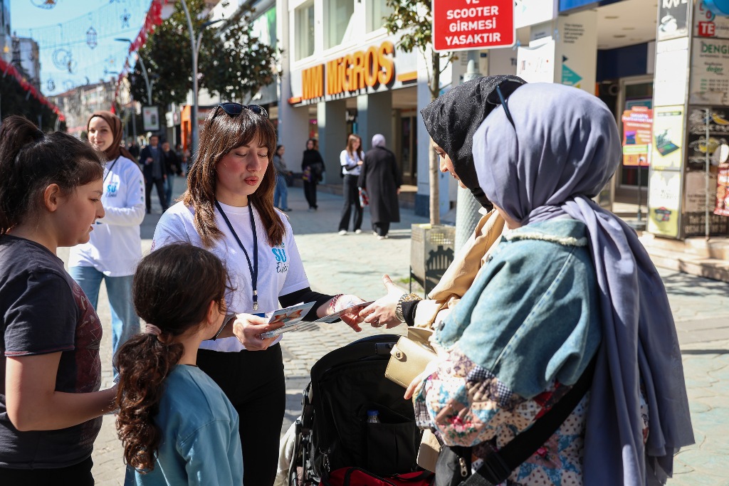 Çark Caddesi’nde gerçekleştirilen etkinlikte, vatandaşlara küresel sorun haline gelen su kıtlığı, iklim değişikliğinin su kaynaklarına etkisi, su ayak izi ve sürdürülebilir su yönetimi anlatıldı. Genç su elçileri, vatandaşlarla birebir iletişim kurarak bin adet su tasarrufu kiti ve bilgilendirme broşürü dağıttı.