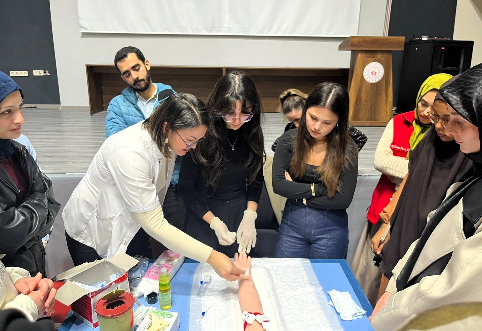 SUBÜ Can Sağlığı Topluluğu, sağlık alanında eğitim gören öğrencilerin damar yolu açma becerilerini geliştirmek amacıyla atölye çalışması düzenledi.