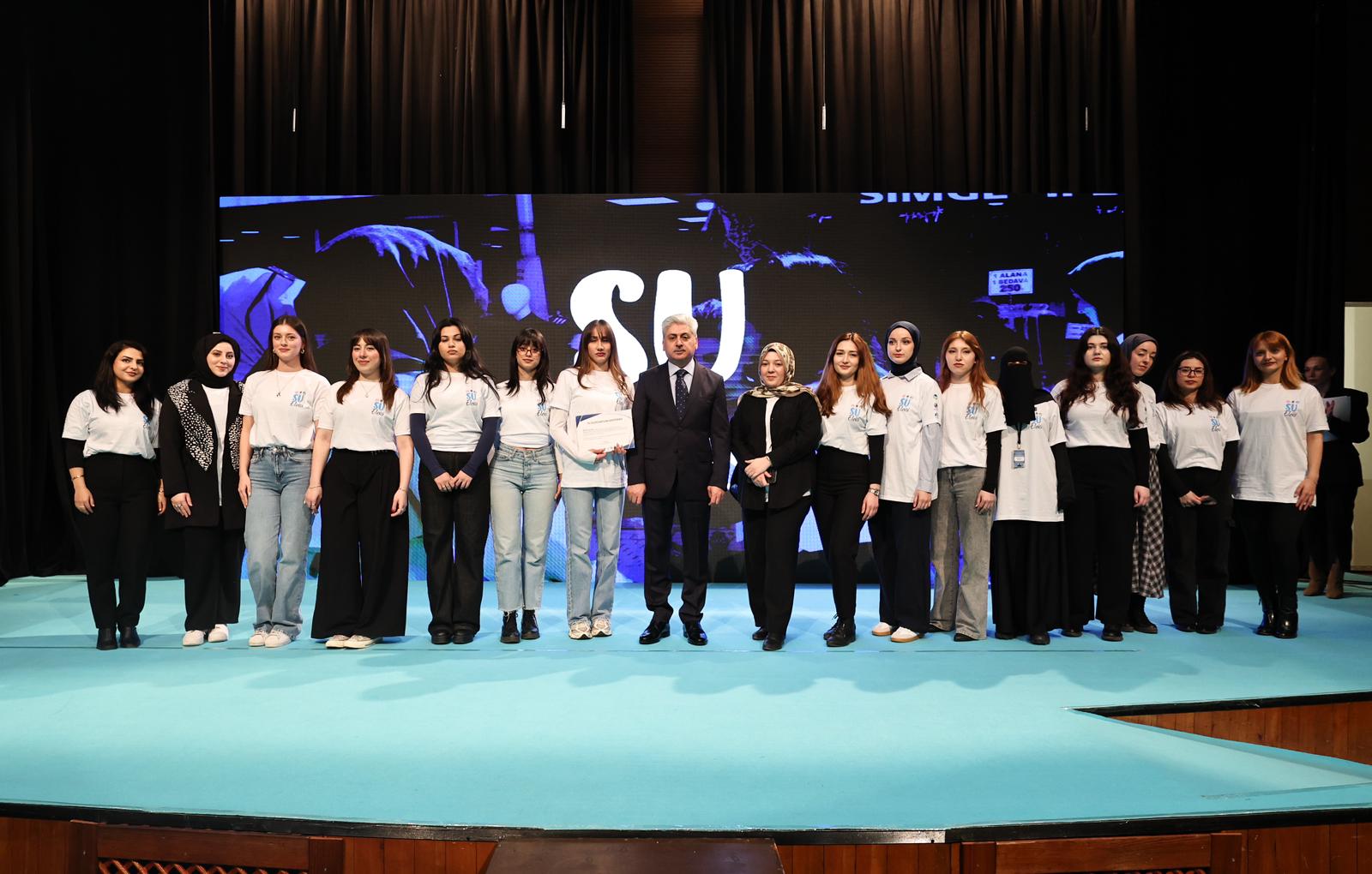 Başkan Alemdar ve Vali Rahmi Doğan, SAÜ İnsan ve Toplum Bilimleri Fakültesi Sosyoloji bölümünde okuyan su elçilerine ve SASKİ tarafından ilçelerde eğitim verilen minik su müfettişlerine katılım sertifikası takdim etti.